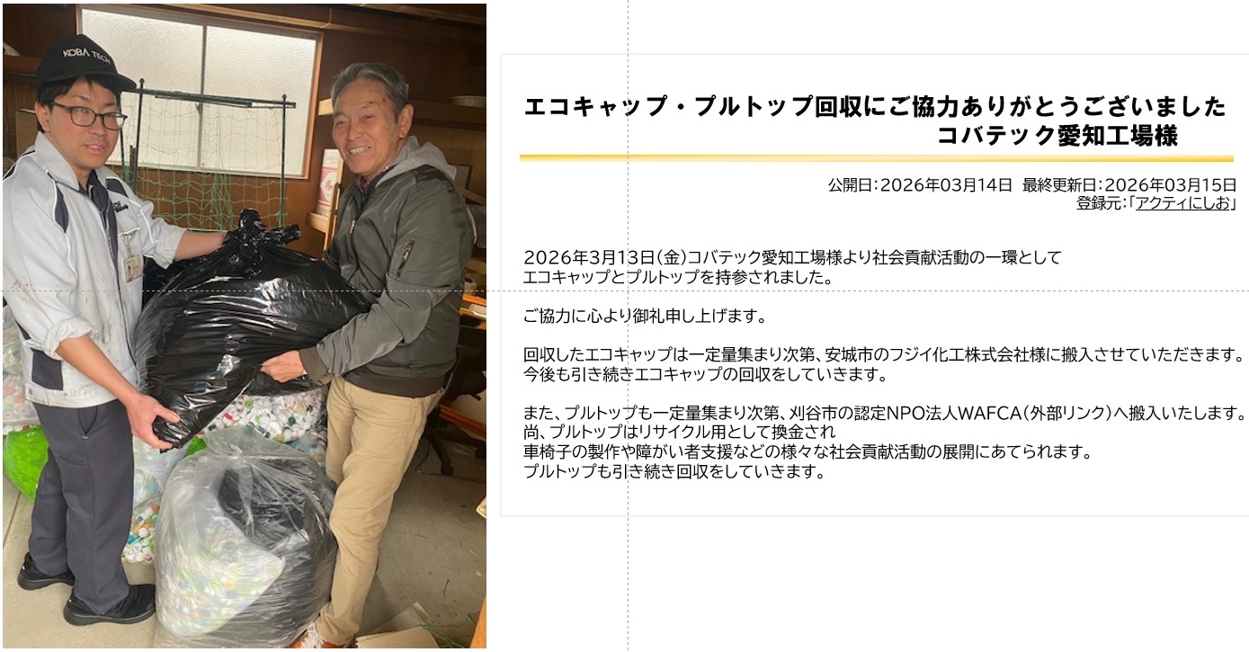 ペットボトルキャップの回収【愛知工場】